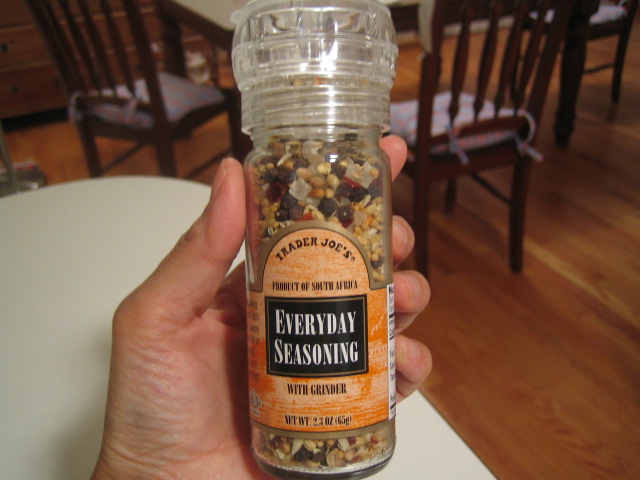 シーズニング、いつもだったらクレイジーソルトを使うところなんですが、今回は昨日トレイダージョーズで買ってきたEveryday Seasoningっていうのを使ってみました。