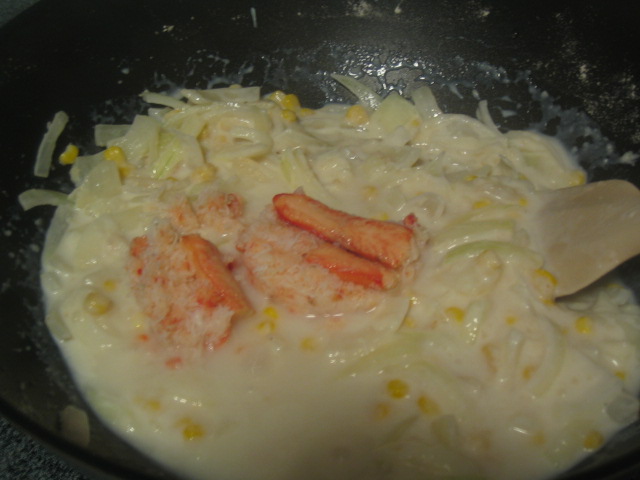 カニ缶(ツナでもサーモンでもチキンでもベーコンでもOK。ただしホタテだと味が薄すぎてよくわからないw)