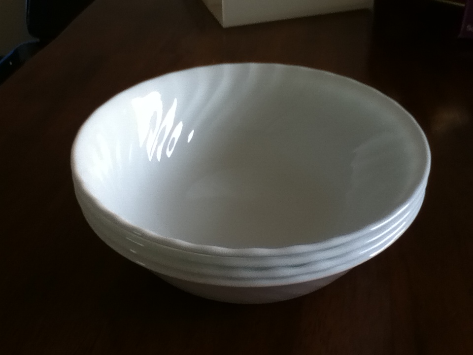 今日気づいたんだけど、大小関わらず深さのあるコレールは、内側に柄がないと、食卓に並べた時にやたら白いのよね。
