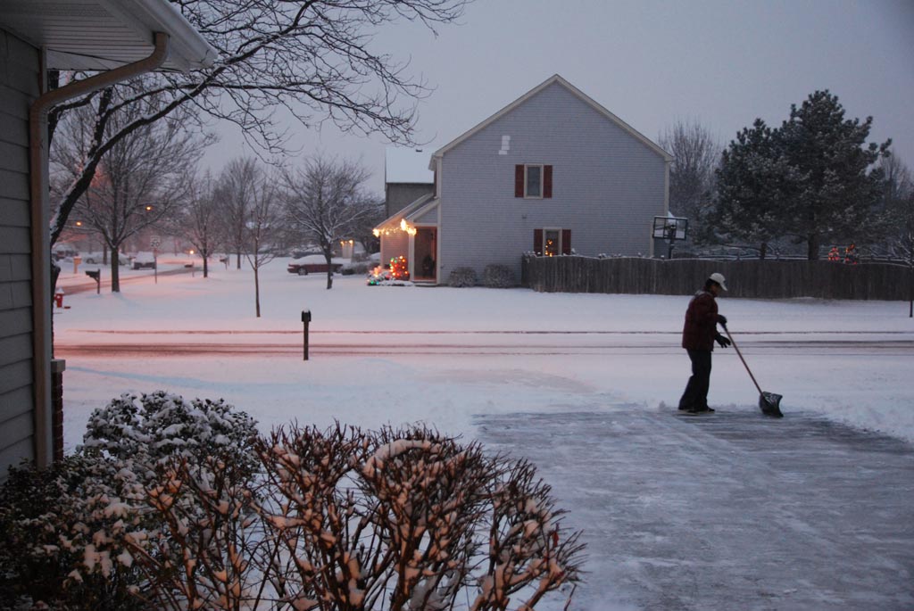 ↑早朝から雪かきの夫。