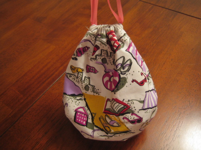 そういうのが欲しくてネットで探していたら、既製品で巾着になっているものを発見。