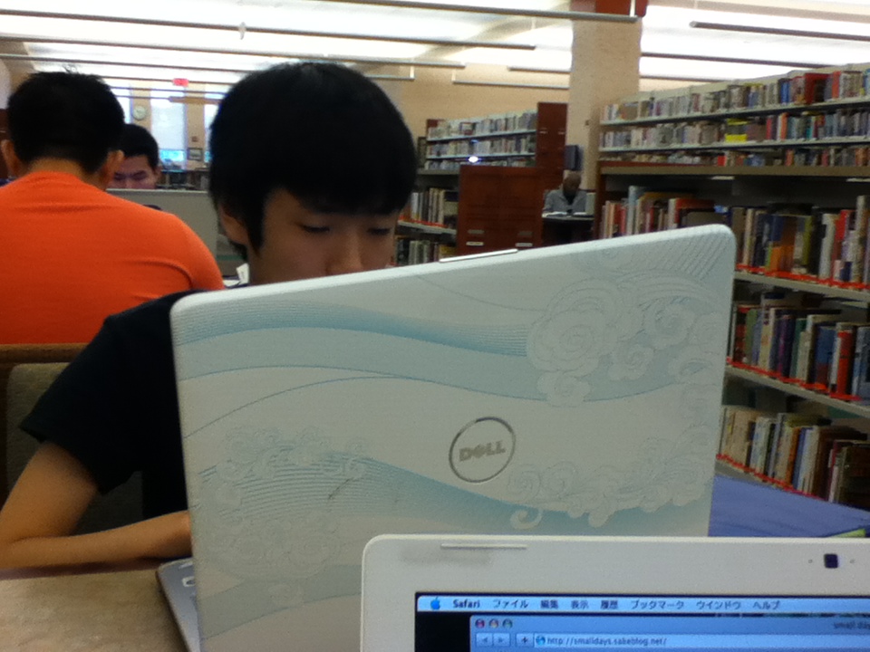 ■図書館の私たちの隣りのテーブルでで、一人でMacのラップトップで動画見てる男の子が、よく見たら友達の息子くんだった。
