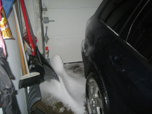 ガレージドアのすき間から吹き込んだ雪が、可愛い山を作ってました(笑)