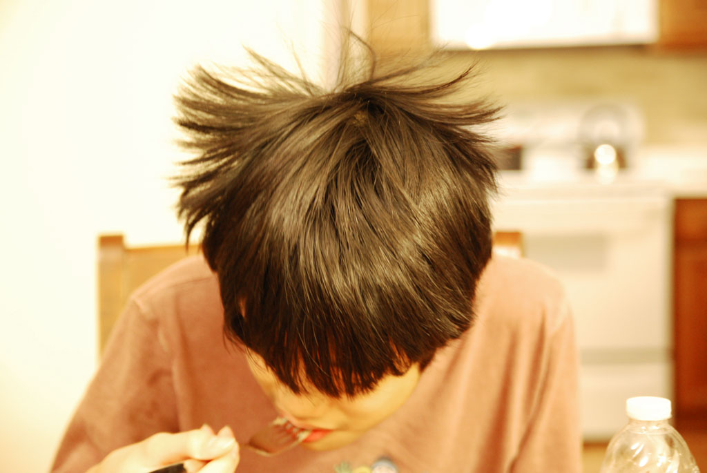 ↑深夜に起きてきて、黙々とムースを食べる息子。