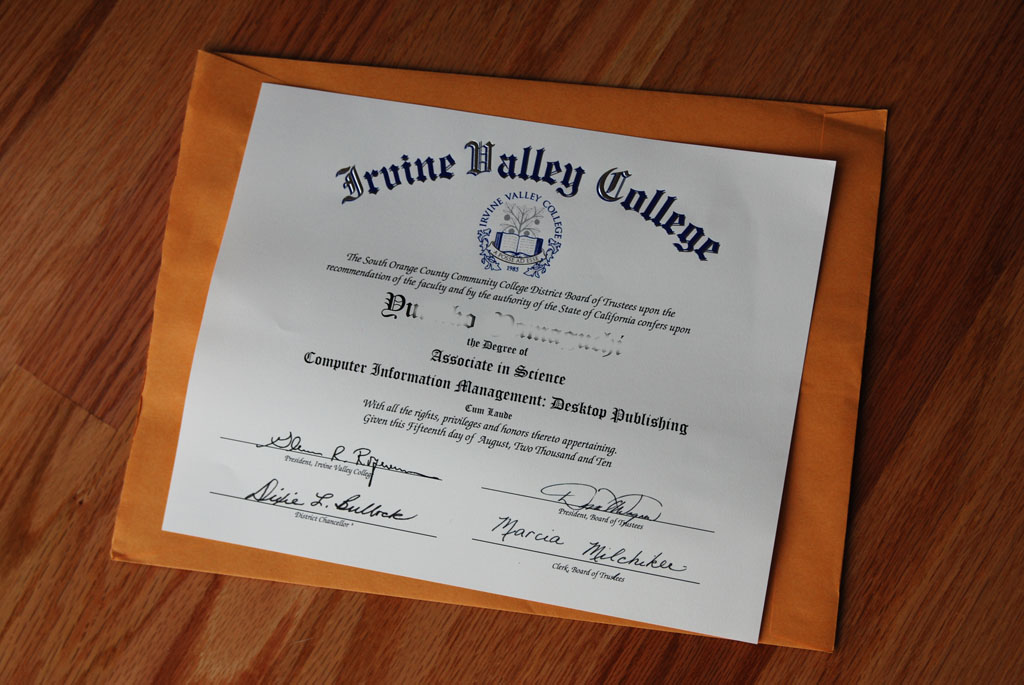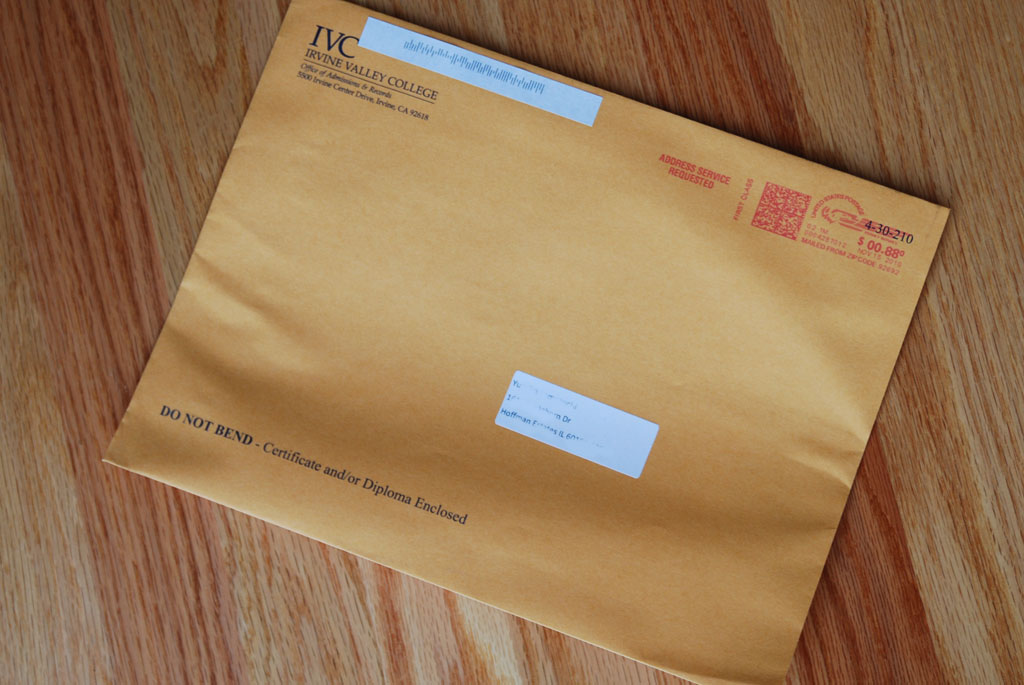 ↑郵便ポストの広告の束に混じって、カリフォルニアで通っていた大学、Irvine Valley Collegeから茶封筒が。