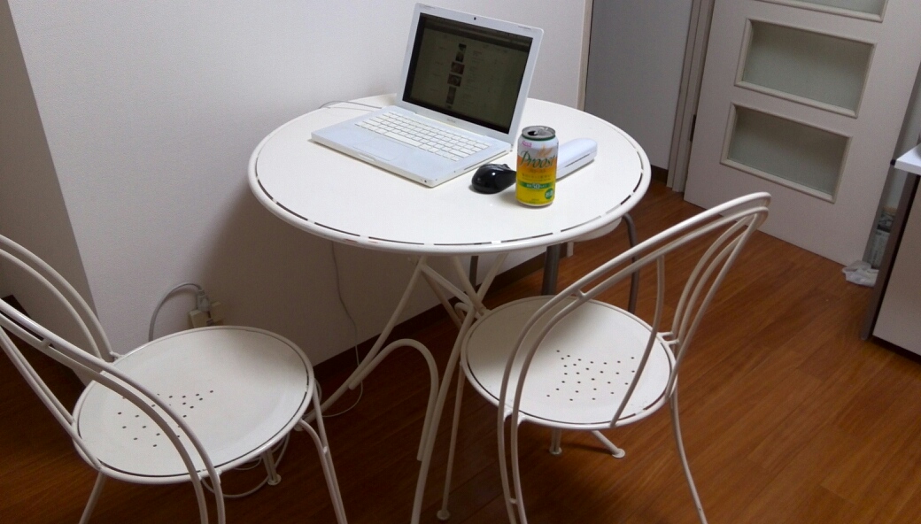 そこに届いたアメリカからの荷物は、家具は本棚が1つと、ガーデンテーブルとイスのセットぐらい。