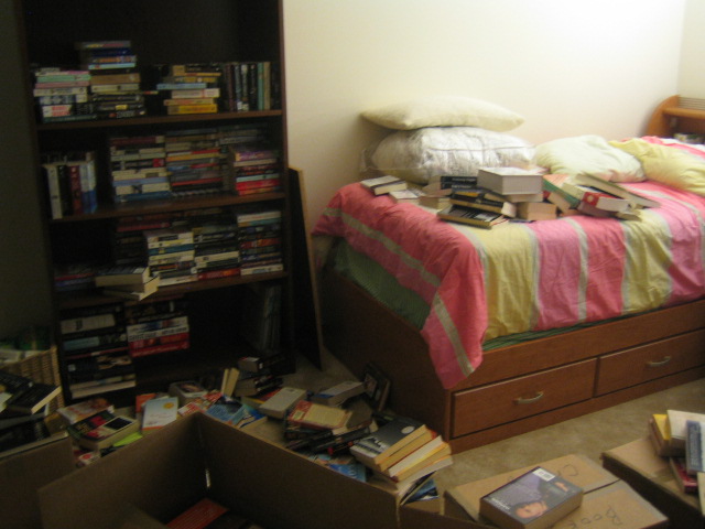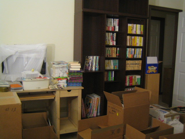私の部屋は、自分の本とCDの収納がほぼ終わったので、子供たちの本を片付けているところ。