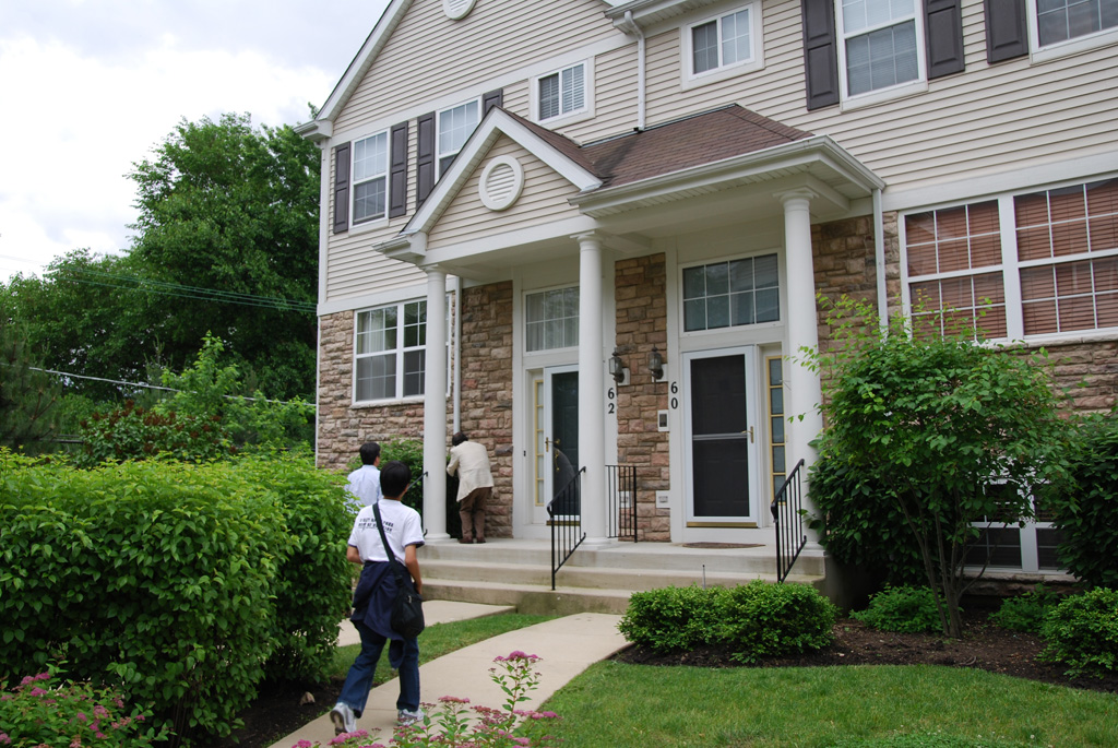 上の写真は1件目のタウンハウス(数世帯が1つの建物にまとまっていて、アパートのようだけどガレージは一戸建てのようにビルトインになってる)。