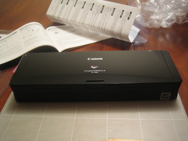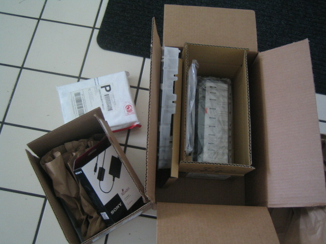 中身は電子書籍端末Sony Readerの電源アダプターと、誕生日プレゼントに買ってもらったキヤノンのドキュメントスキャナー。