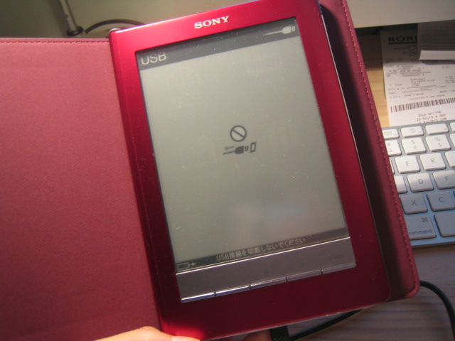 私の電子書籍端末、Sony ReaderをPCから充電中。