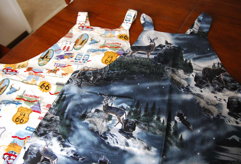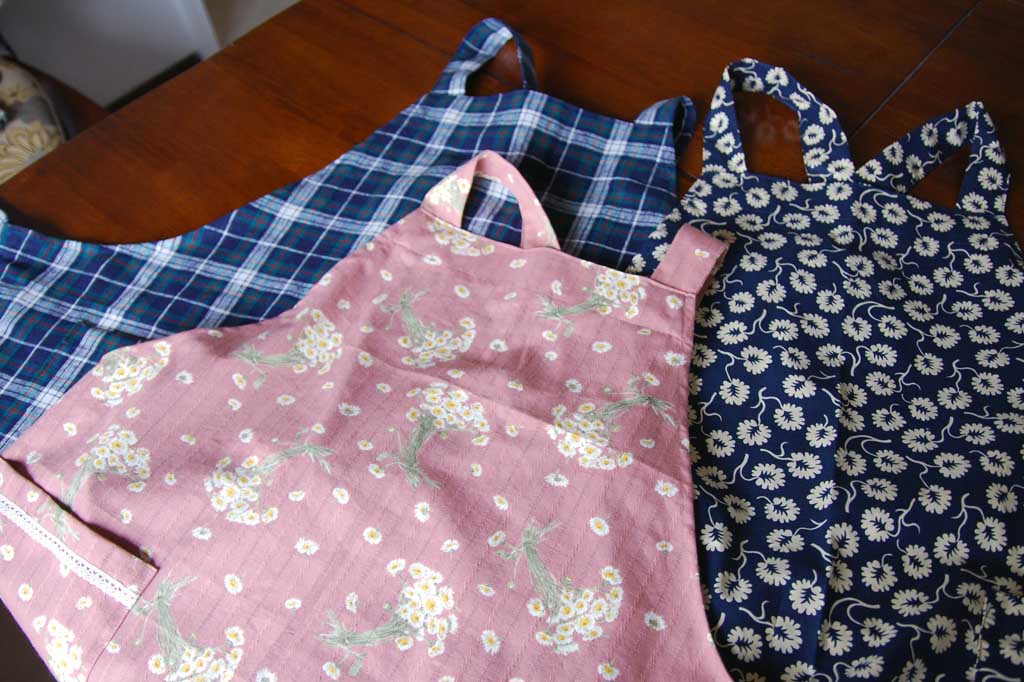 日本から持って来た型紙で、日本人サイズのシンプルなエプロンを作りました。