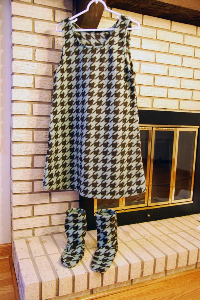 で、前回はチョコミントみたいな千鳥格子のチュニックだけしか仕上がってなかったので、今日はおそろいのルームソックスと、チェック柄のチュニック+ソックスを頑張って仕上げました。