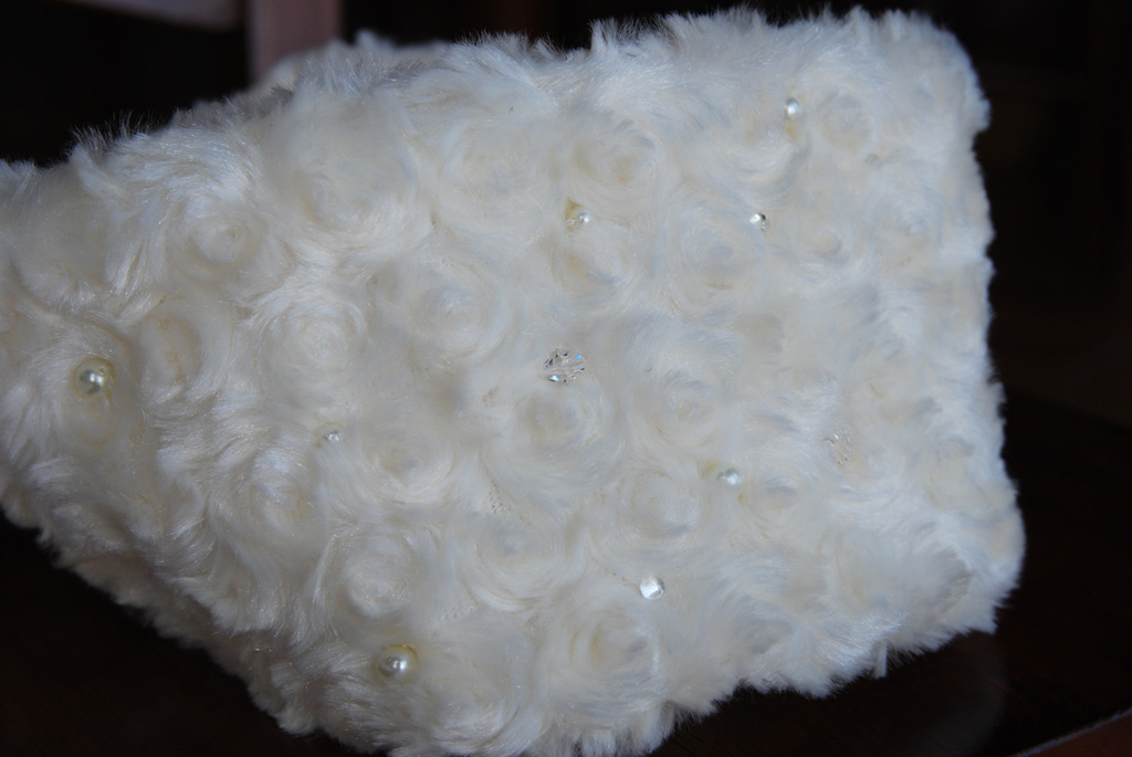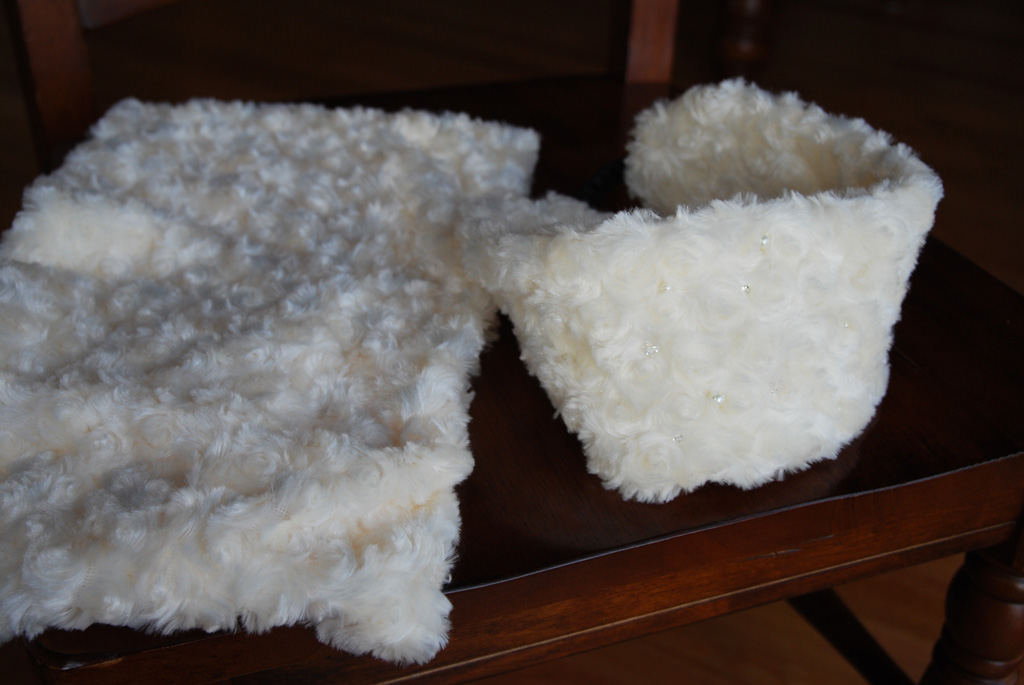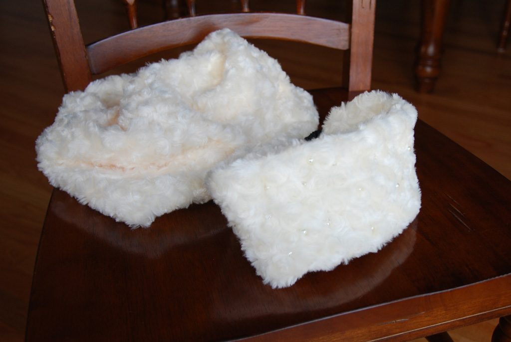 くるくる巻き毛で可愛いファーを見つけたので、半ヤードだけ買ってきて娘用にネックウォーマーとイヤーウォーマーを作りました(^^)