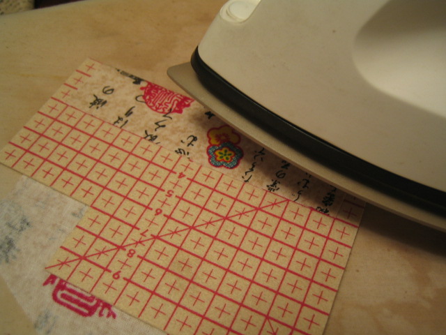 これは日本で買って来たクロバーのアイロン定規で、布が滑らないように起毛加工してあって、熱に強いのがミソなんだけど………