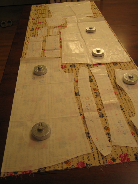 待ち針は使わず、和裁で使う裁鎮を乗せてカット。